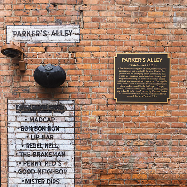 The Alley’s namesake is rooted in history long before the bustling storefronts of Woodward. It is an homage to Thomas Parker, who acquired the lot for $1 in 1809 and became one of Detroit’s first Black landowners. In 2021, a plaque was erected in the alley to honor Thomas Parker and remember the historical moment.